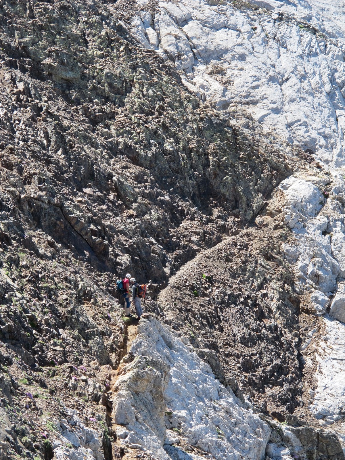 La travessa és llarga, anem secs d'aigua, i aquí ja es comença a veure que anem una mica cascats... A més comença a ser tard, ja són les 16:00 i encara estem molt lluny. No obstant això, queden moltes hores de llum, fins a les 21:00 0 22:00 no hem de patir, no ens esperen a enlloc i confiem que trobarem aigua abans d'arribar a baix.