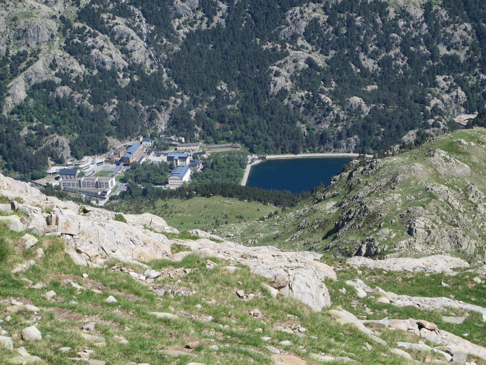Des d'aquí, el Balneari ja es veu, però està molt, molt lluny... a baix de tot. Anem força cruixits, però ara només es tracta d'anar seguint el camí fins a baix.