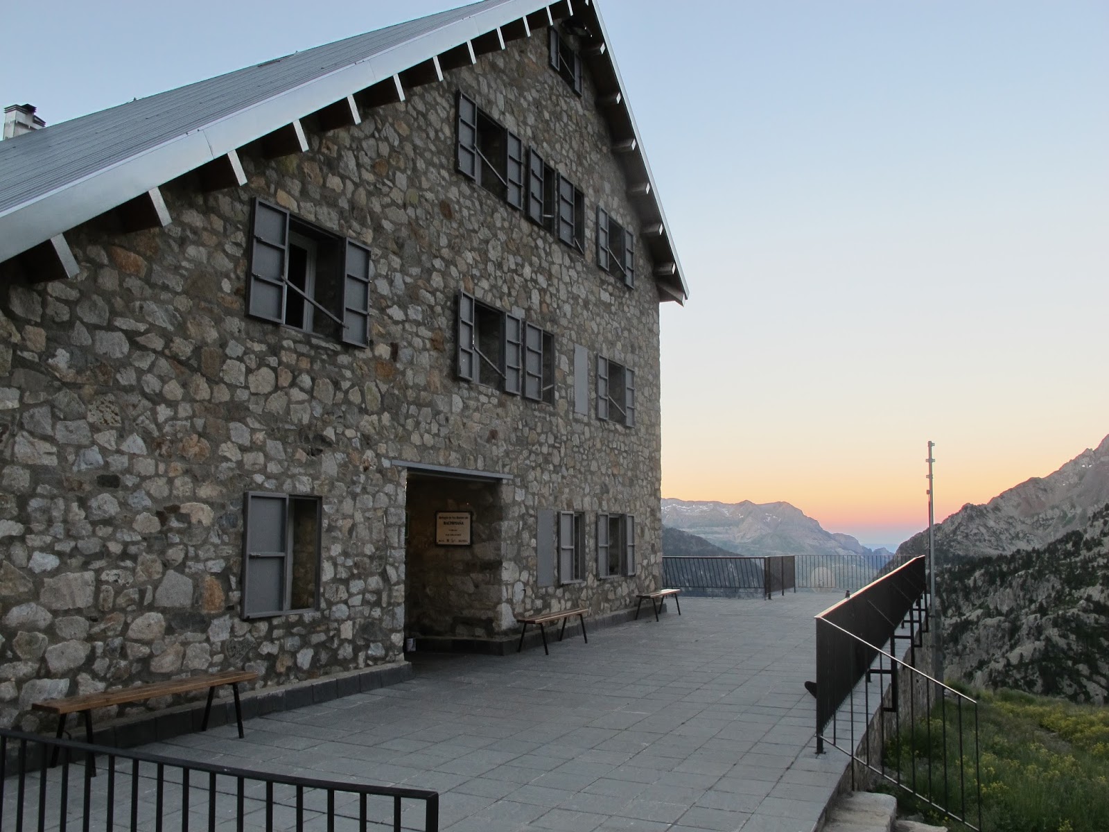 El Balneari deixem els cotxes, al costat del Refugio de la Casa de Piedra. 1628 m. Sortim seguint el GR. cap al refugi. En dues hores "de agradable paseo" segons la guia, arribem al refugi del Bachimaña, a les 18.30. 2200 m. Una ascensió preciosa, però no ens enganyem, ens hem fotut 572 m de desnivell, res que no puguem fer, però "agradable paseo"... Portem boudrier, cordesi casc, perquè no veiem clara una part de la cresta... a part de grampons i piolet, i com notornem pel refugi, tot el que portem, ho portarem demà durant l' ascensió... no anem molt carregats, però una mica més de l'habitual.