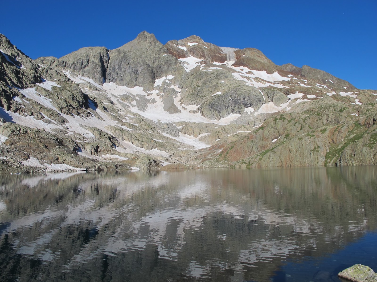 L'activitat és simplement ESPECTACULAR. Les vistes són absolutament fantàstiques. Des de l'últim cim es veu gran part del Pirineu, les Tres Sorores, Balaitous, Vignemale... llacs per totes bandes, força neu (per estar a mitjans de juliol)... una passada. La sortida en si, no és tan llarga en hores, si vas per feina, sense entretenir-te, passant de fotos i de la gent, en 8-9 hores es hauria de poder fer (sense anar corrents estil Kilian). Però és entretinguda, ens hem posat i tret els grampons tres cops, hi ha una bona part de grimpada (no som ràpids en aquestes operacions) hem parat força a menjar i beure, fer fotos, gaudir... i som sis, que sempre et mous més "lentament" que si només anem dos o tres.